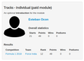 Joomla Tracks is a management tool for racing type championships, like formula one, WRC, nascar, or any type of competition where the participants get points according to their ranking in events.