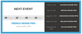 The first upcoming event is listed on the left side, with a countdown to the date and time of start time.